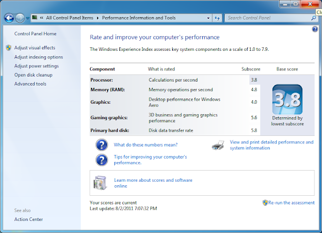 Here's the windows experience index for a studio xps laptop with a 2.4 Ghz core 2 duo: